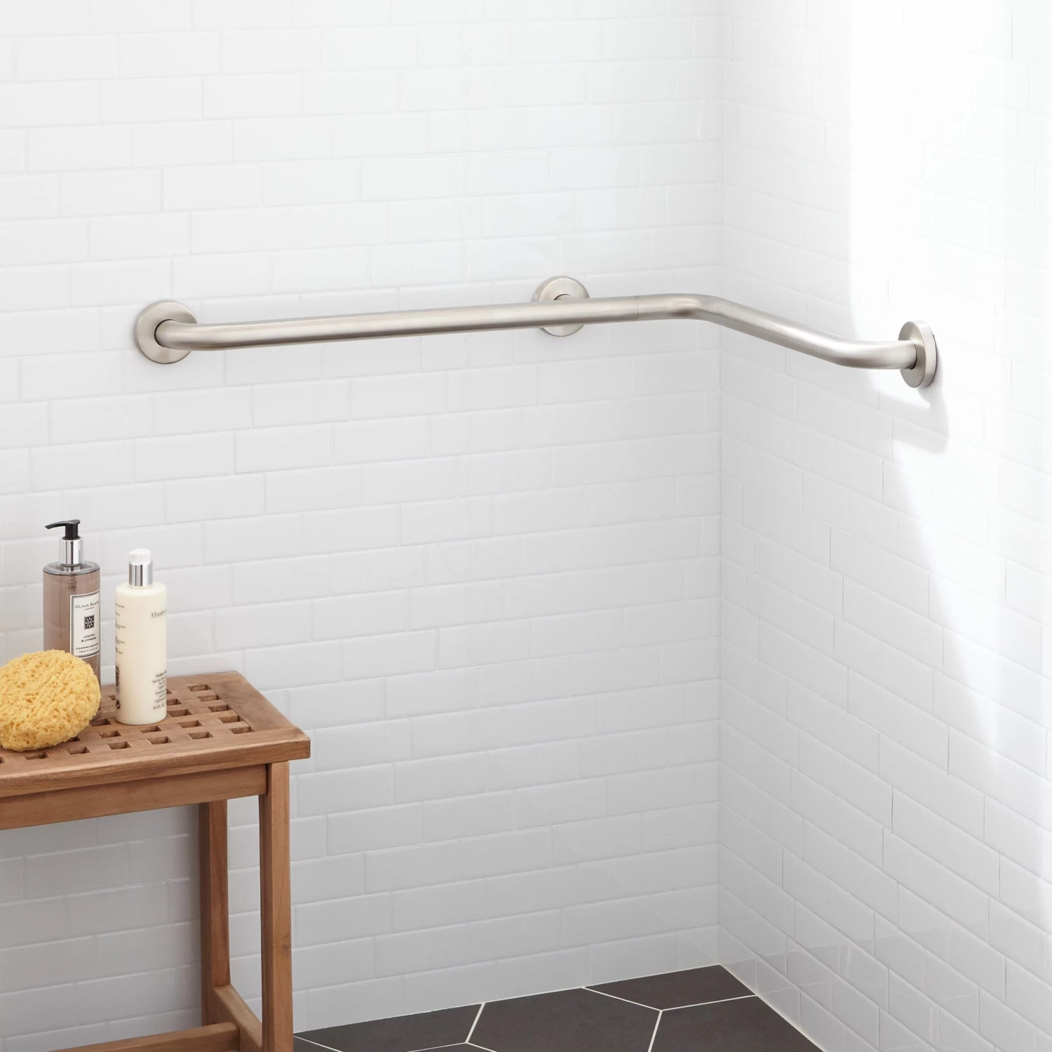Provide support and safety in your shower with the Pickens Corner Grab Bar. The simple design and beautiful stainless steel finish will add style to your bathroom.