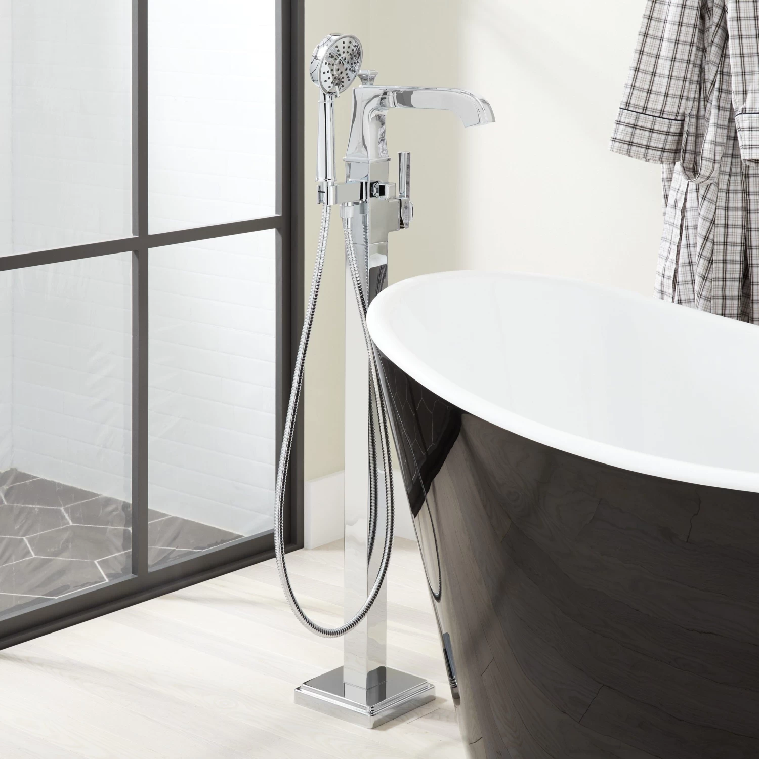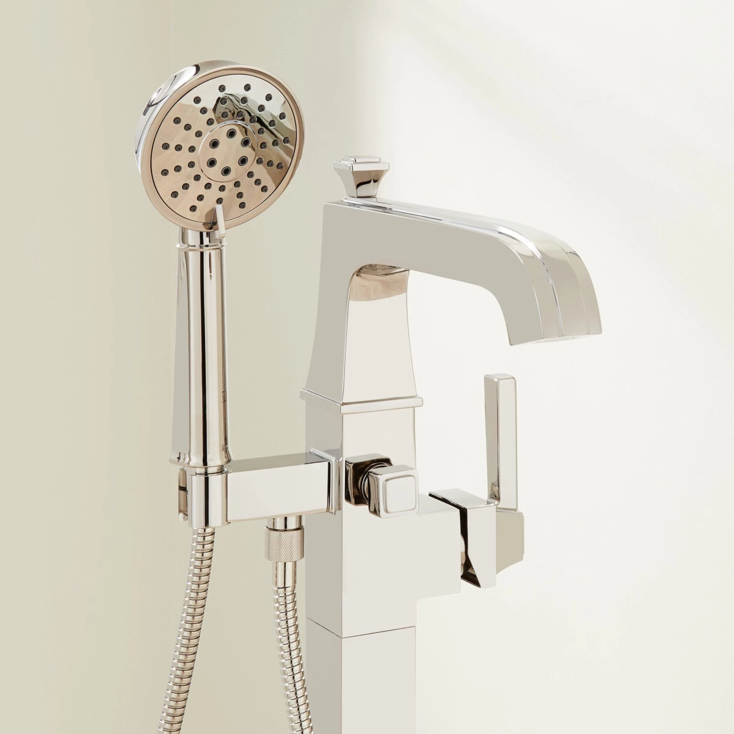 A stylish accent alongside a traditional bathtub, the Pinecrest Freestanding Tub Faucet flaunts crisp lines and sophisticated details. Its dual-function hand shower switches seamlessly from a jetted stream to a gentle spray by rotating its face. Durably built, this filler is made of high quality materials and comes in your choice of premium finish.