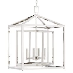 Lend your space an eye-catching decorative touch with the Plaza 4-Light Pendant Chandelier. This fixture is crafted of square metal tubing, which is pieced together to form a dual-cage geometric design. Within its framework are candelabra-inspired light bulbs which will effectively brighten any dark space. Suspended by chain link, the Plaza can be mounted on sloped ceilings at up to a 90-degree angle. Comes with the hardware needed for an easy installation.