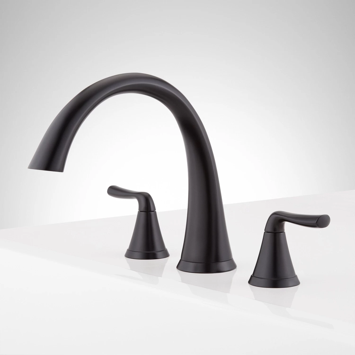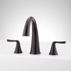 The Provincetown Roman Tub Faucet boasts a graceful design that enhances the look of a modern bathroom. Its superior styling features contoured lever handles and an arching gooseneck spout, each with flared bases. Made of high quality materials with a corrosion-resistant finish, this fixture promises to last.