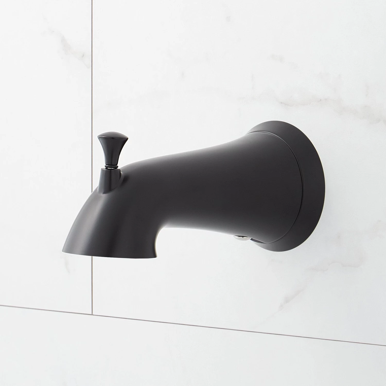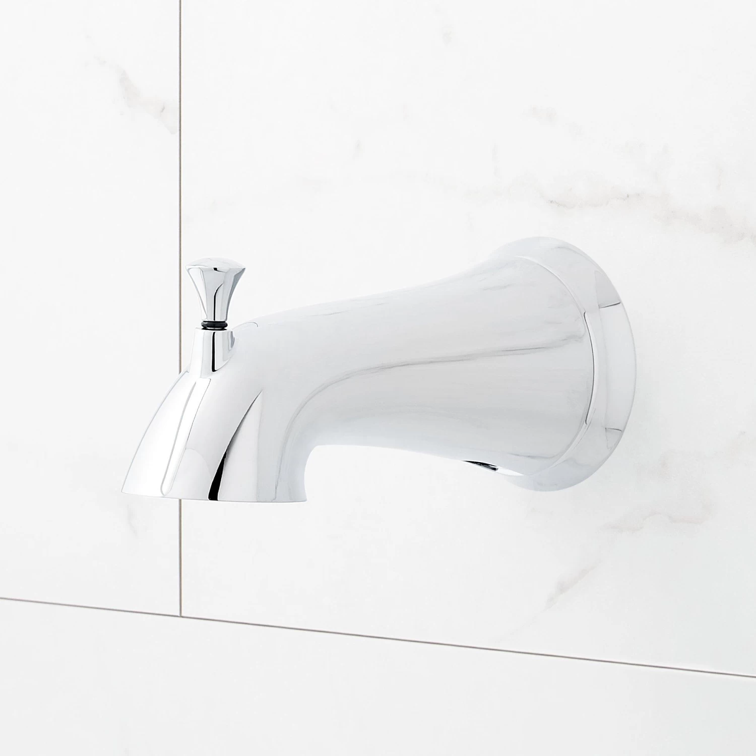 The Provincetown Tub Spout with Diverter comes with a high-quality finish that resists rust and corrosion. It is constructed of metal, giving it long-term dependability. The integrated diverter allows you to switch from tub to shower head quickly. Choose from multiple finishes to match other fixtures.