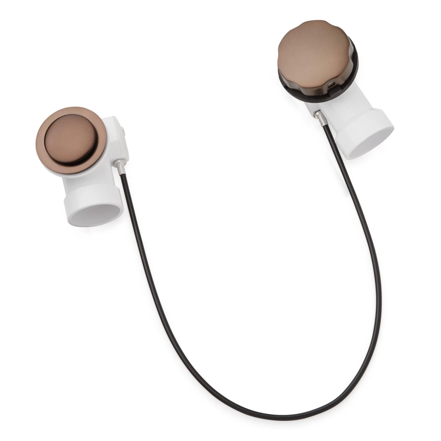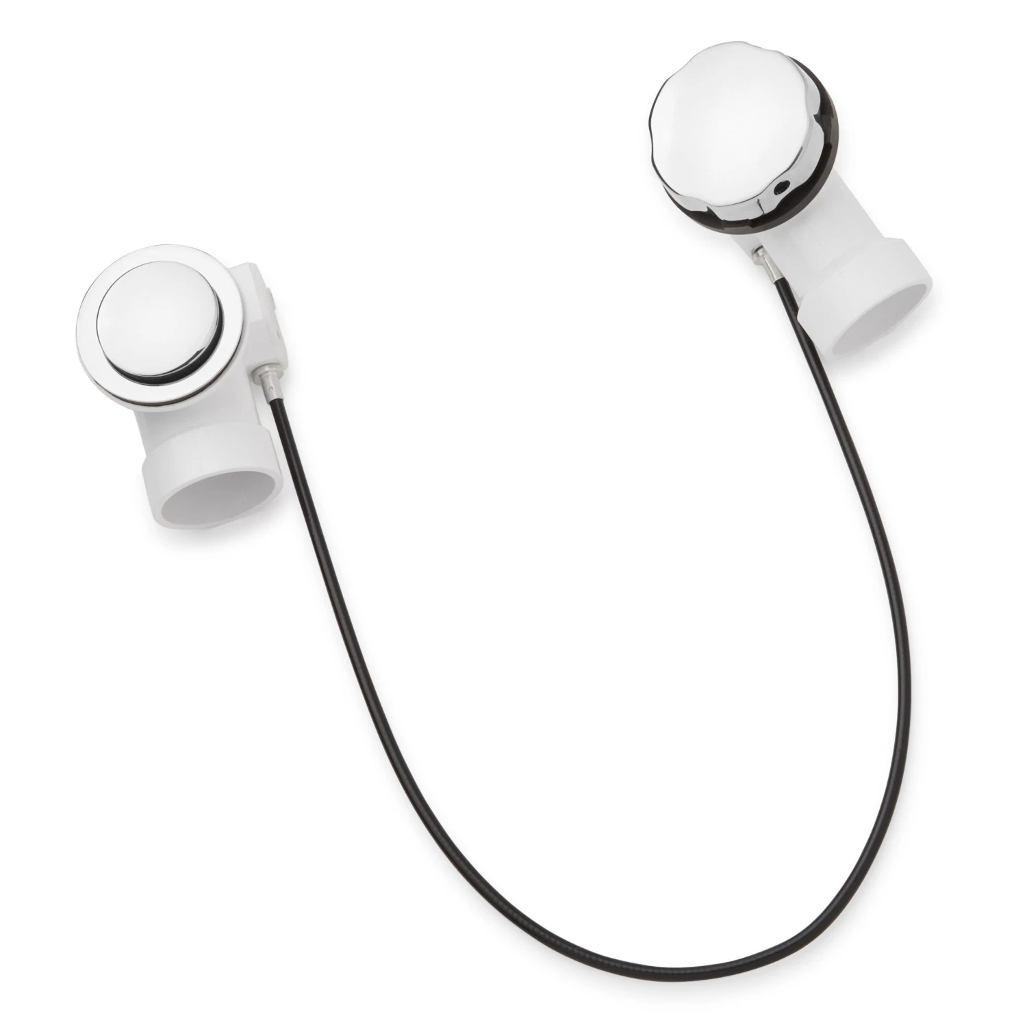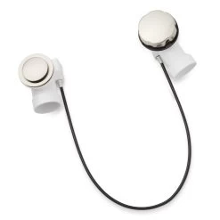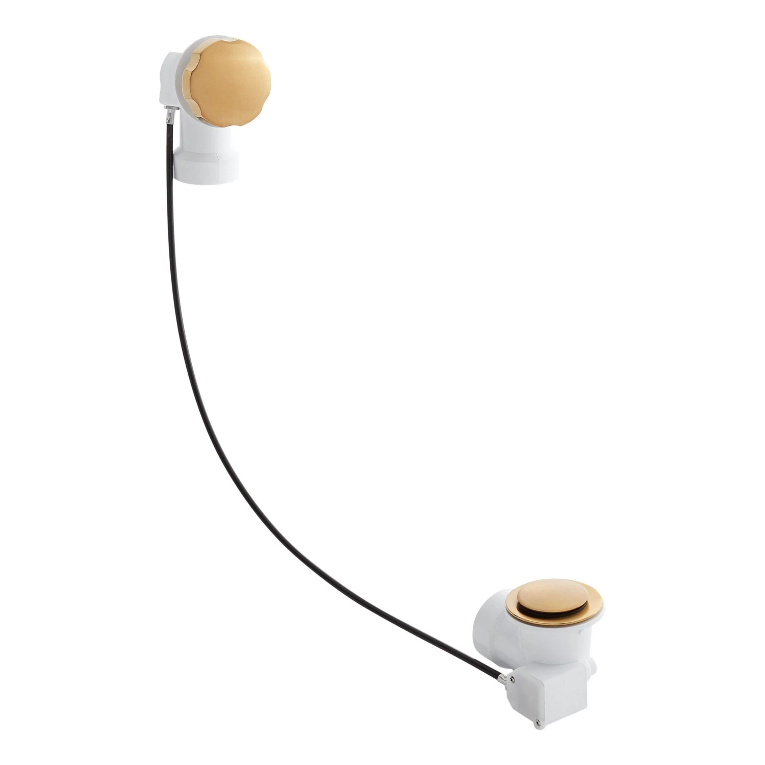 The bathtub Cable Drain & Overflow Kit is controlled by its easy-to-turn knob. A concealed, metal cable that runs along the outside of the pipes to the drain opens and closes the stopper as the knob is turned. This efficient design along with durable brass construction ensure this drain will be a lasting addition.