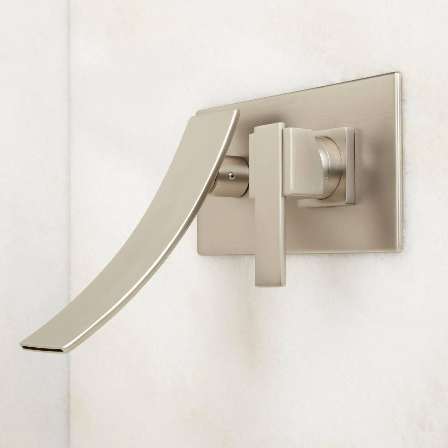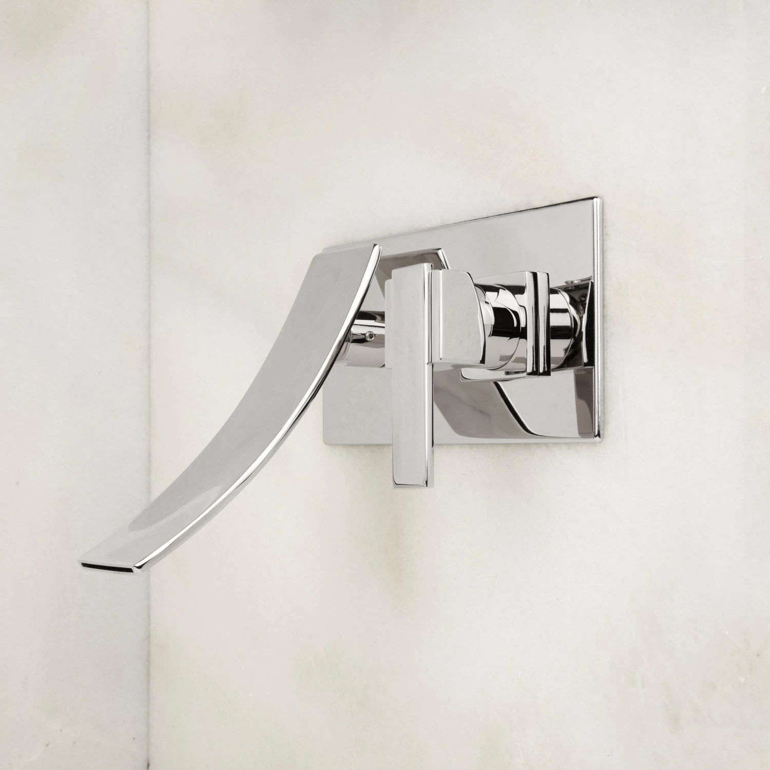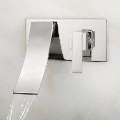 Joining striking modern design with a soothing waterfall stream, the Reston Wall-Mount Waterfall Bathroom Faucet makes for a dazzling addition. This faucet features a single-lever handle with a square control.