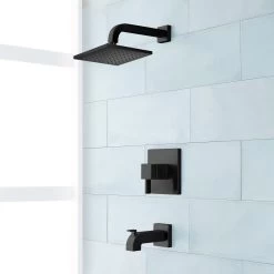 The three-piece Rigi Pressure Balance Tub and Shower Set has everything you need to transform the look of your bathroom. The wide, square showerhead is a dynamic, hyper-contemporary element that catches the eye, while the metal handle and faucet both rest comfortably on square backdrops to create a balanced look.