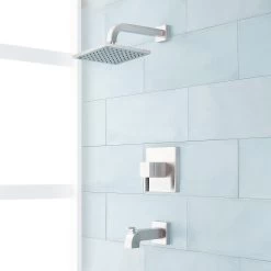 The three-piece Rigi Pressure Balance Tub and Shower Set has everything you need to transform the look of your bathroom. The wide, square showerhead is a dynamic, hyper-contemporary element that catches the eye, while the metal handle and faucet both rest comfortably on square backdrops to create a balanced look.