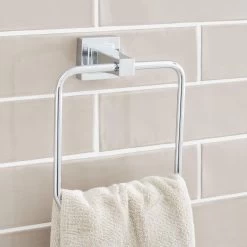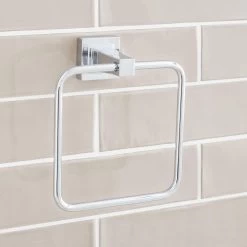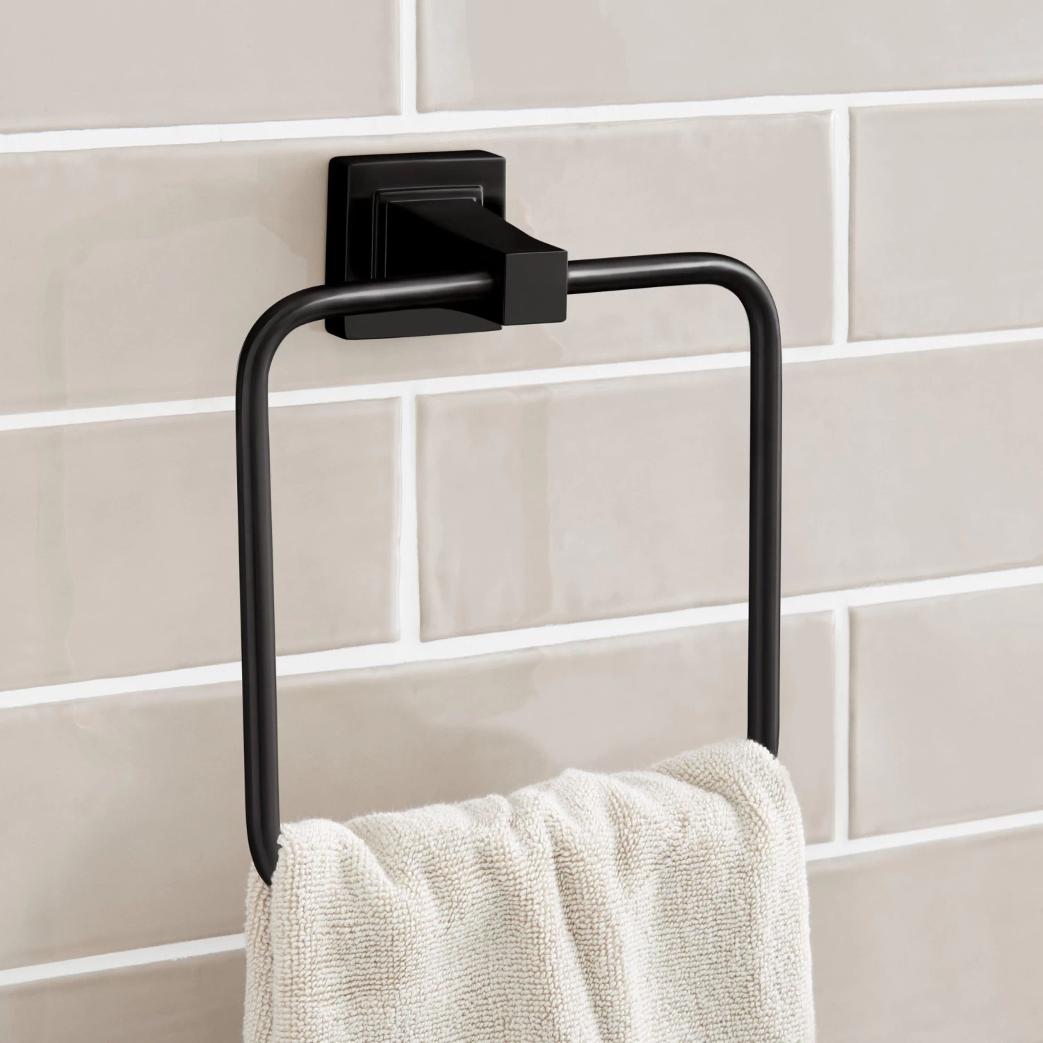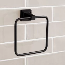 The Rigi Towel Ring features a square shape and rounded edges to soften the angular silhouette. Its durable construction includes a high-quality finish that protects it from rust and corrosion. Mounting hardware is included to make installation easy.