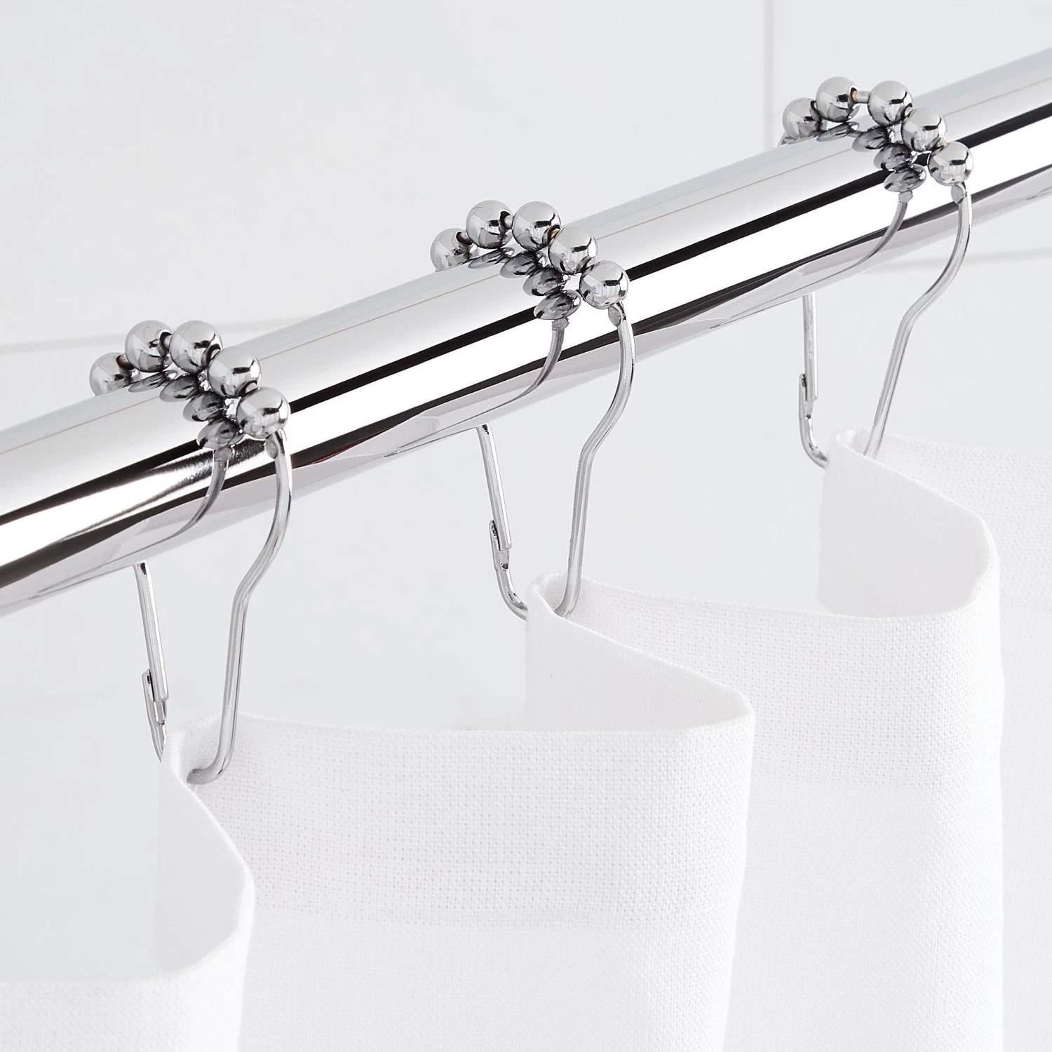 - Rolls friction-free across your shower curtain rod.