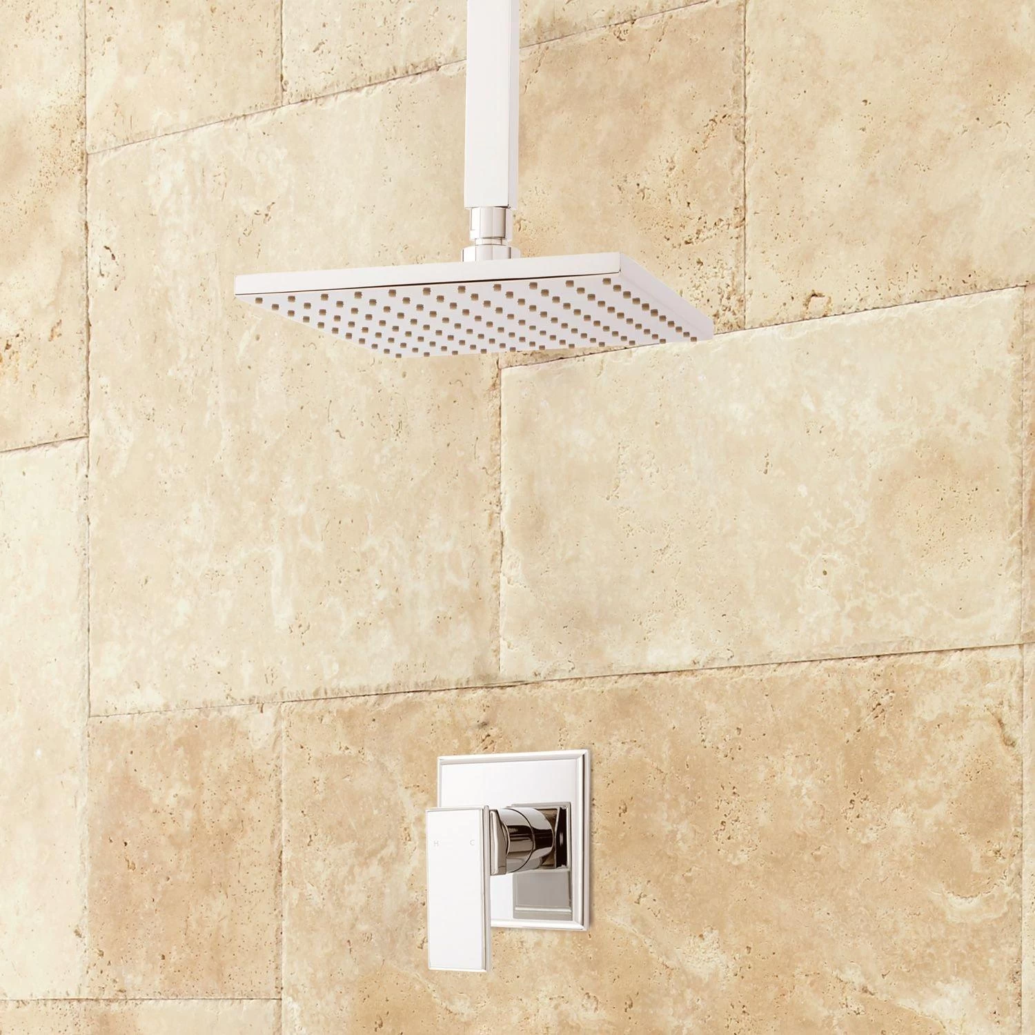The Ryle Shower Set contains a square shower head, ceiling-mount arm, and a shower valve. The contemporary look of each component instantly brings your space up to date. Made of durable brass, the Ryle Shower Set is covered in a premium finish.