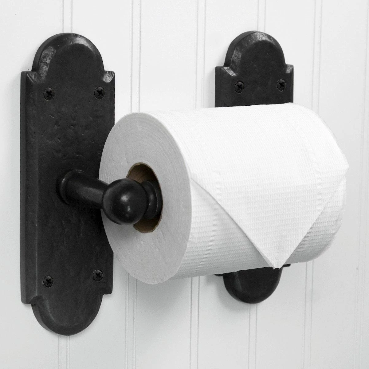 Add this Solid Bronze Toilet Paper Holder with Gothic Ornate Base to your bathroom for a unique and rustic look. See complementing Dark Bronze pieces sold separately.
