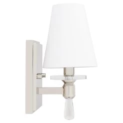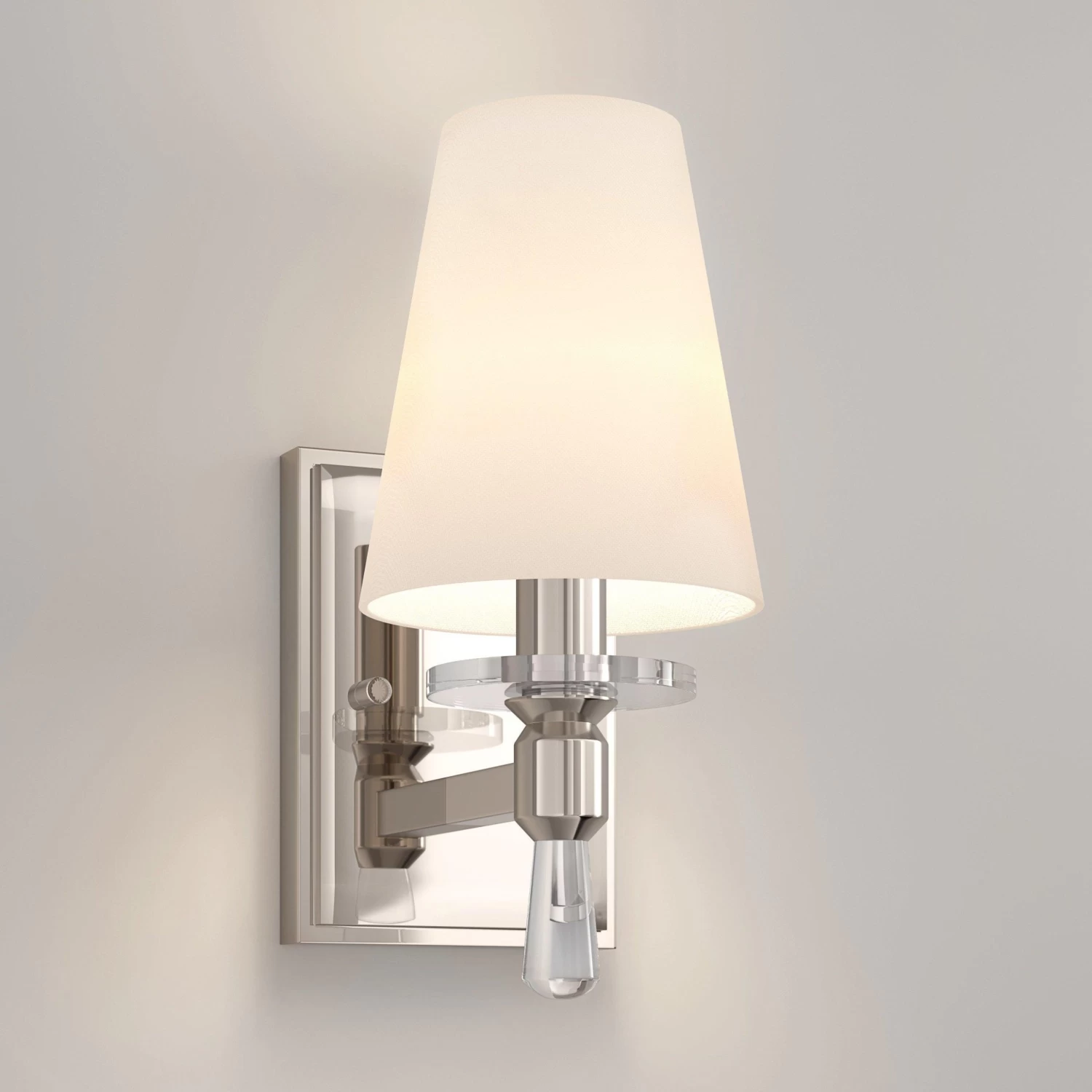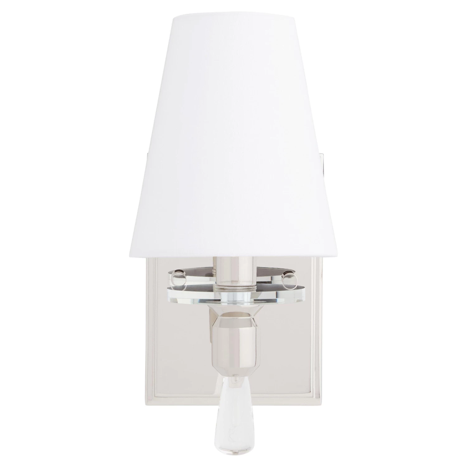 Featuring an elegant mix of traditional and contemporary, the Southampton Wall Sconce will bring modern charm to your home. Its white linen shade creates a soft, effective glow from the single bulb within. Boasting a tasteful combination of styles and materials, this lamp will fit perfectly into any design. Mounting hardware is included for easy installation.