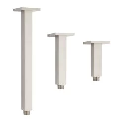 The Square Ceiling Mount Shower Arm allows you to suspend your shower head from above with 4-inch, 6-inch, and 12-inch lengths. This arm adds a modern touch to your bathroom with straight, clean lines and 90-degree angles. Its brass construction is coated in a rust-resistant finish, with multiple finish options available.