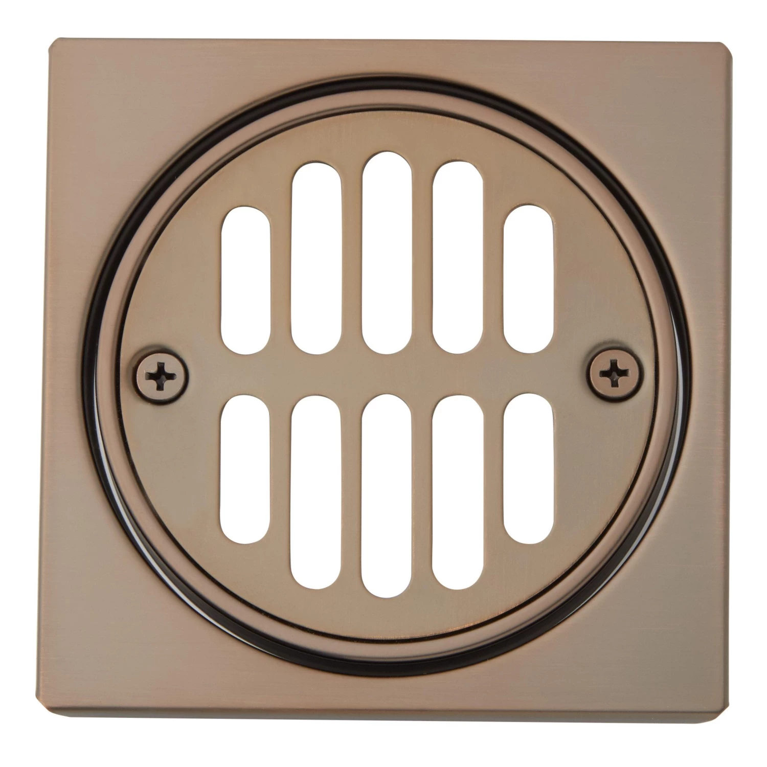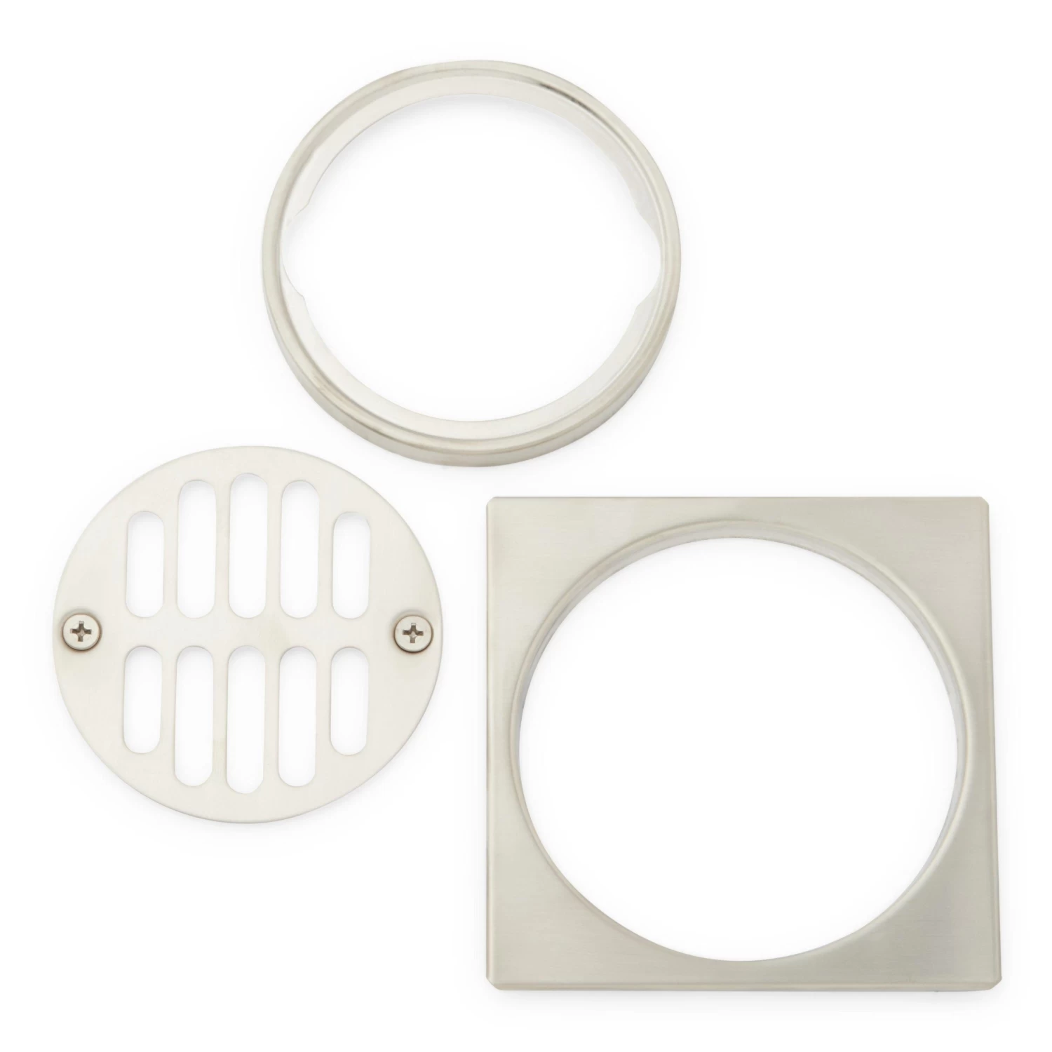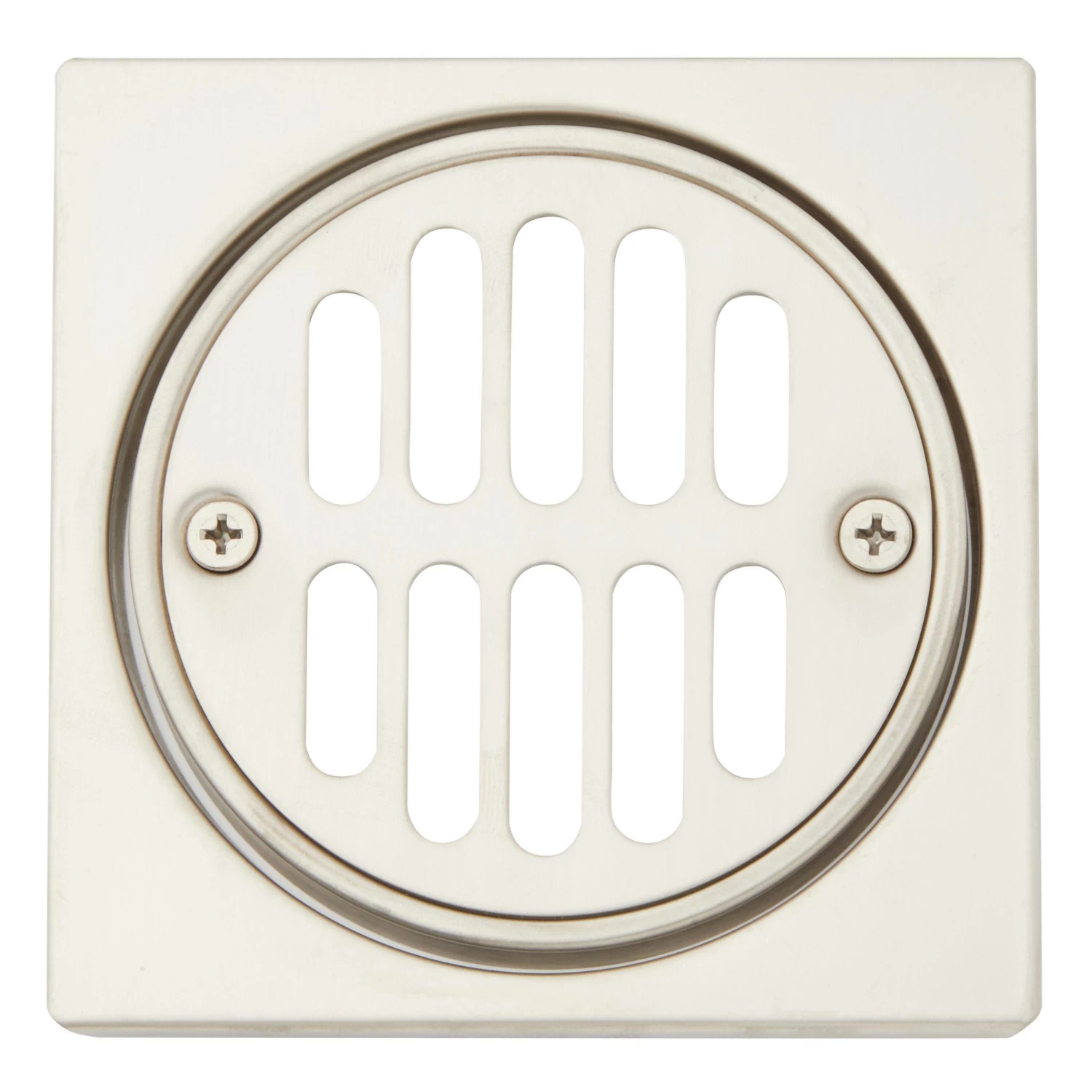 Decorative and durable, this shower strainer is made of 304-grade stainless steel with a tarnish-resistant finish. Its square frame surrounds a removable, circular center that’s held down by a pair of screws. Compatible with 3-1/4″ shower drains.