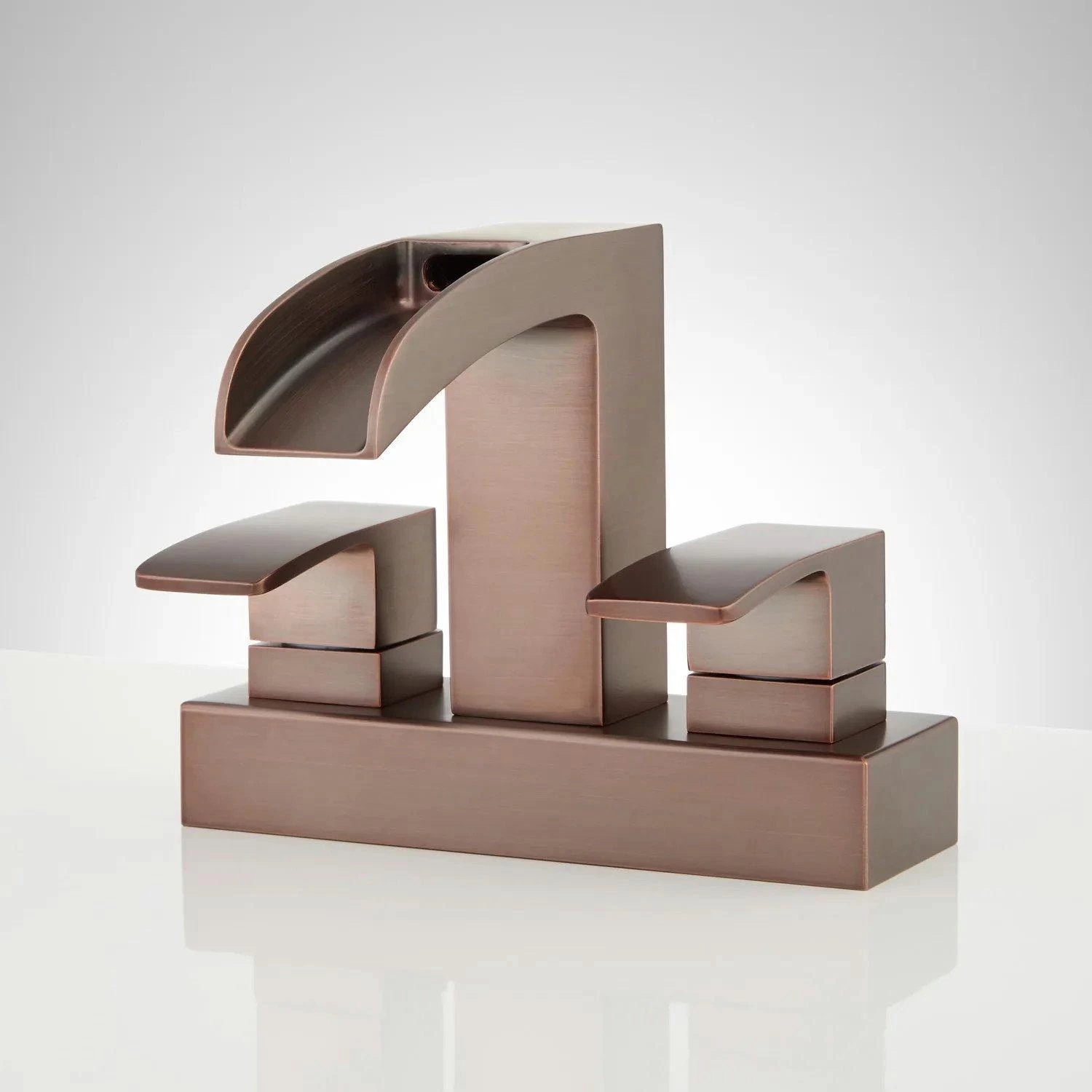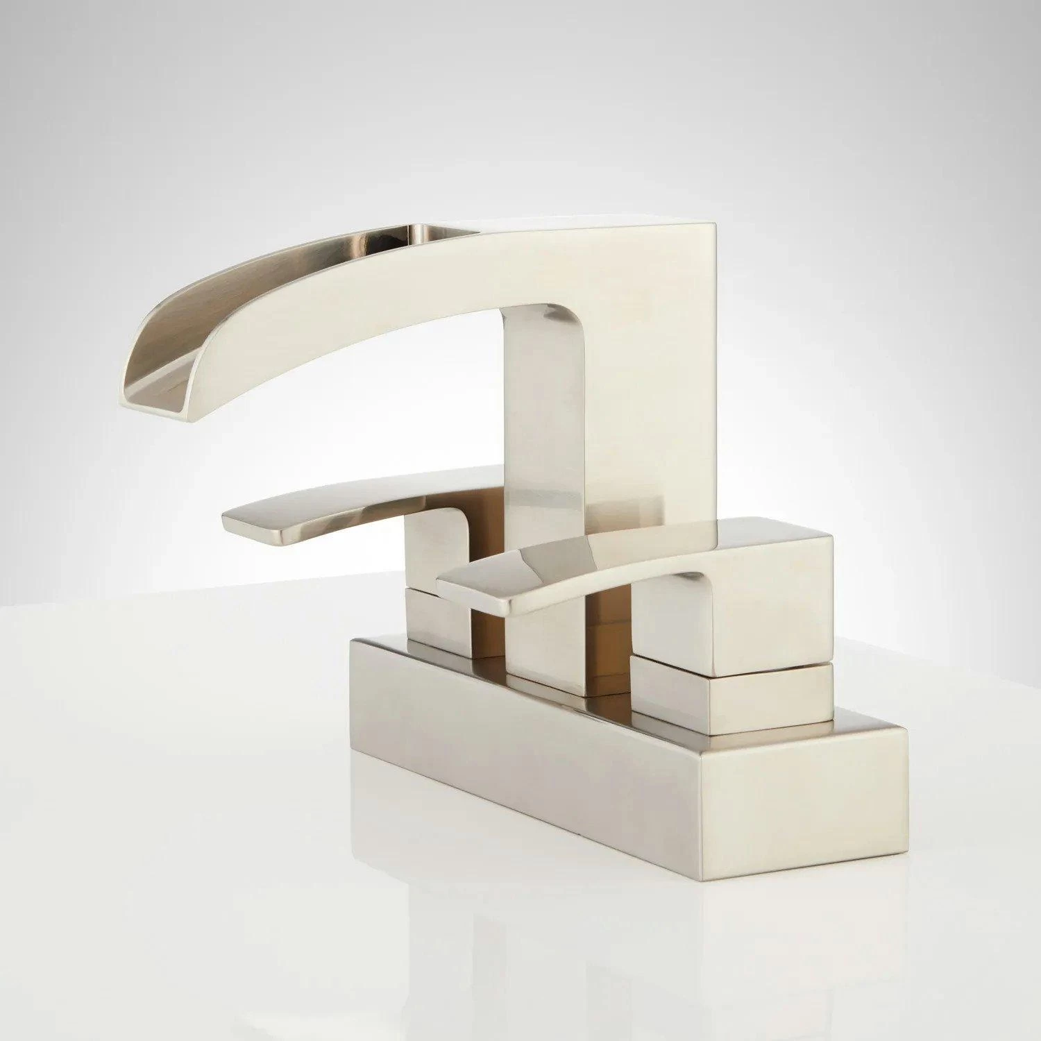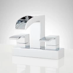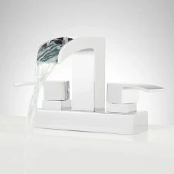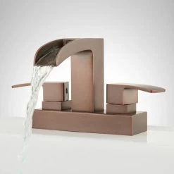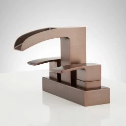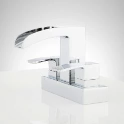 The Stevens Centerset Faucet sends water cascading into your sink. Solid brass construction gives this product heft and durability, which can be felt with each use. The spout’s waterfall design is sleek and stylish, which is just the type of look a modern bathroom needs.