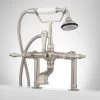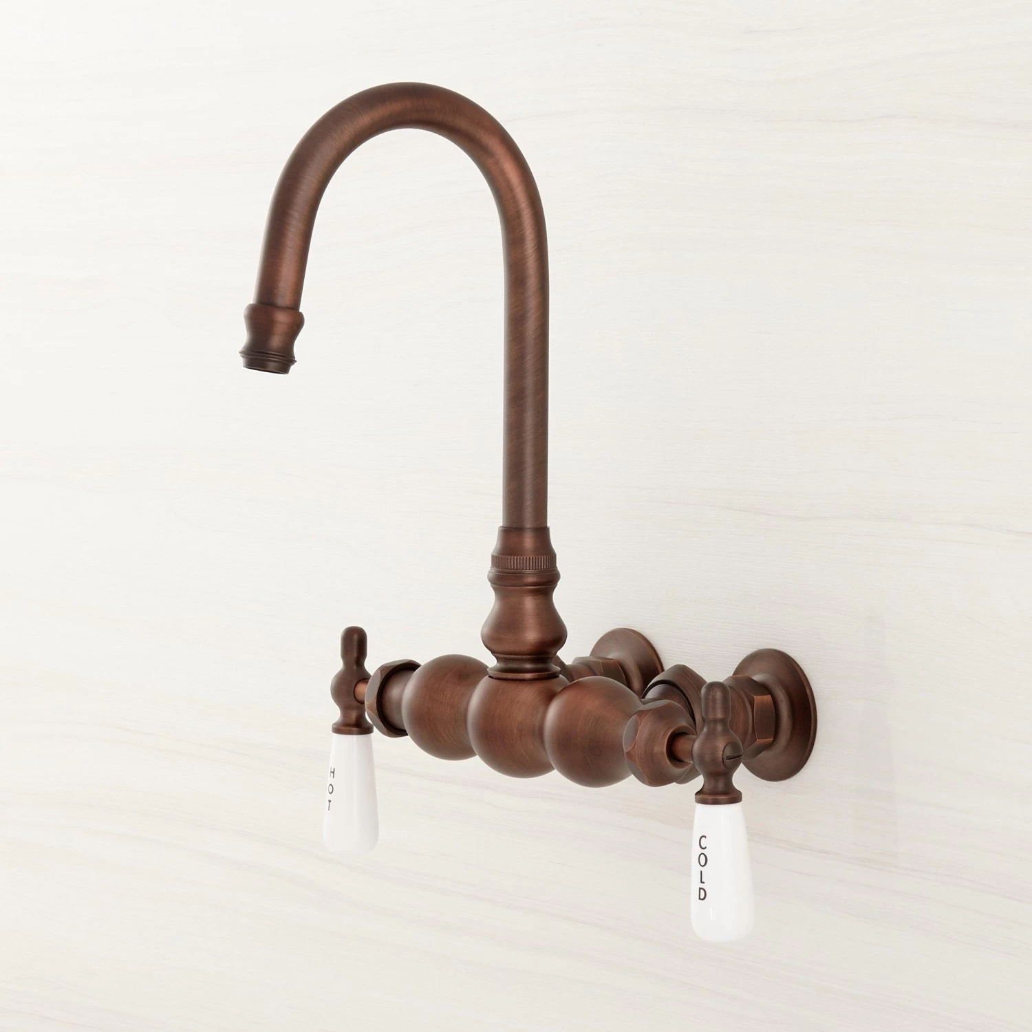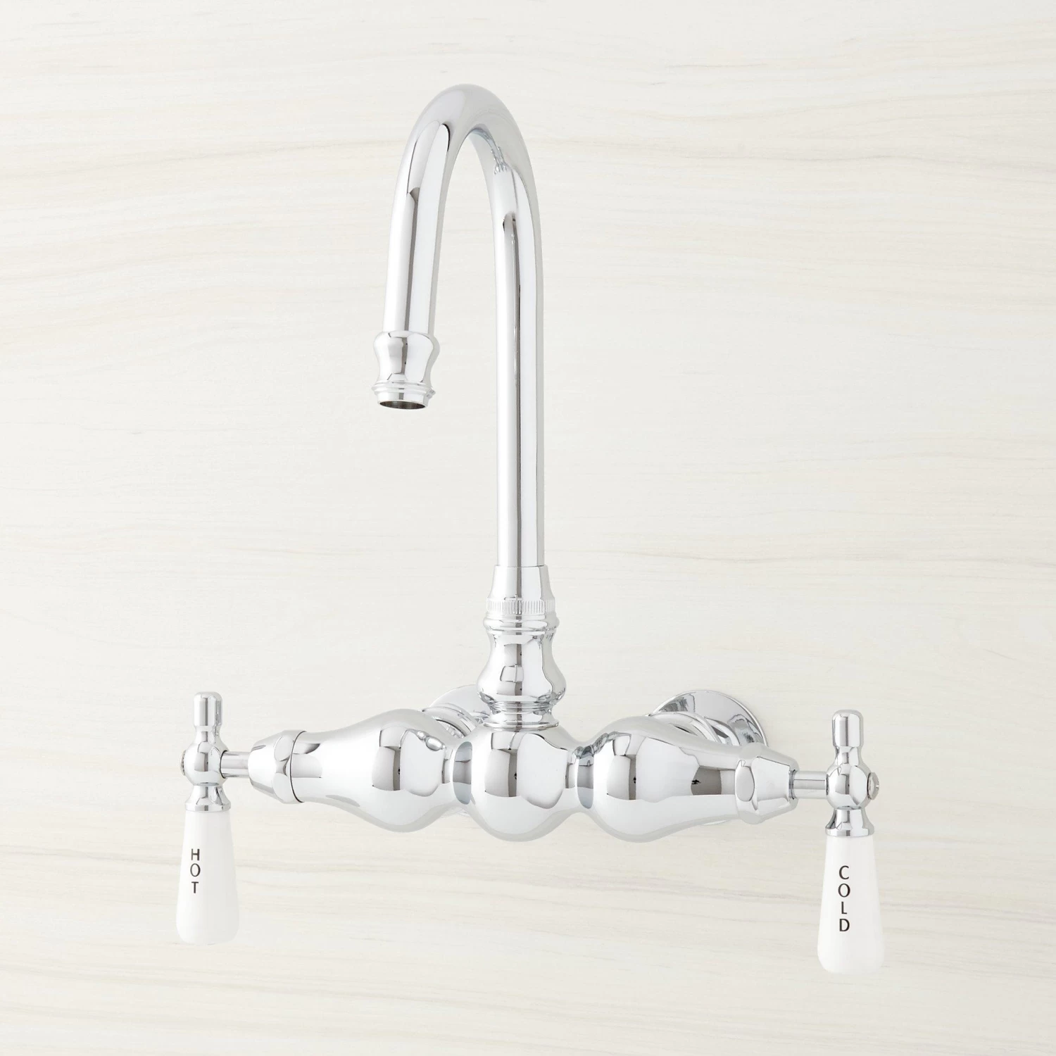 This classic three ball leg tub faucet with gooseneck spout fits most leg tubs. Comes with porcelain lever handles and in your choice of finish.