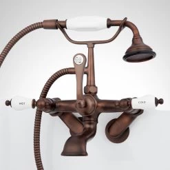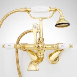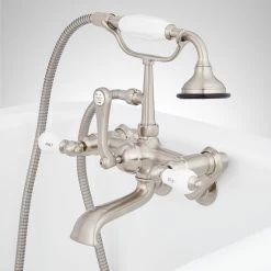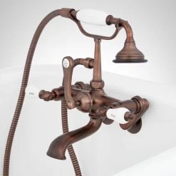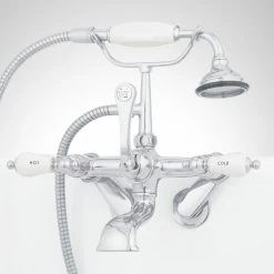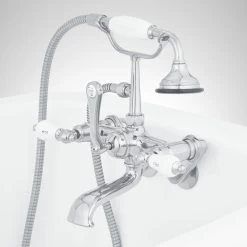 Complete a freestanding tub project in vintage style with this attractive tub faucet, which includes a convenient hand shower.