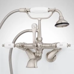 Complete a freestanding tub project in vintage style with this attractive tub faucet, which includes a convenient hand shower.