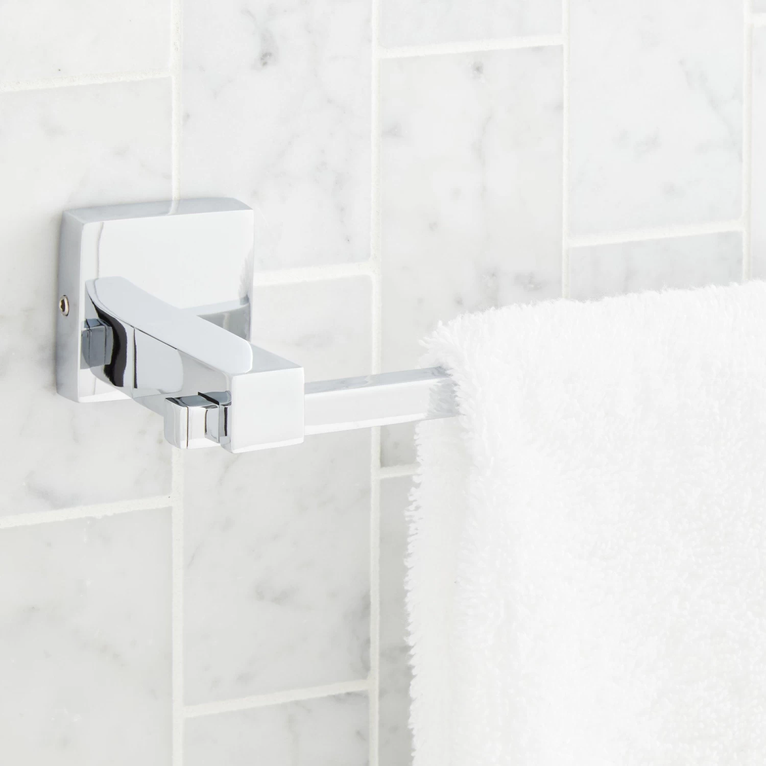 Perfect for keeping your towels dry and organized, the 24″ Tyndall Towel Rod stylishly accents your bathroom. Made of solid brass, this modern piece is available in a variety of different finishes to complement your existing decor. For the complete look, pair with other accessories from the Tyndall Collection. Mounting hardware is included for easy installation.