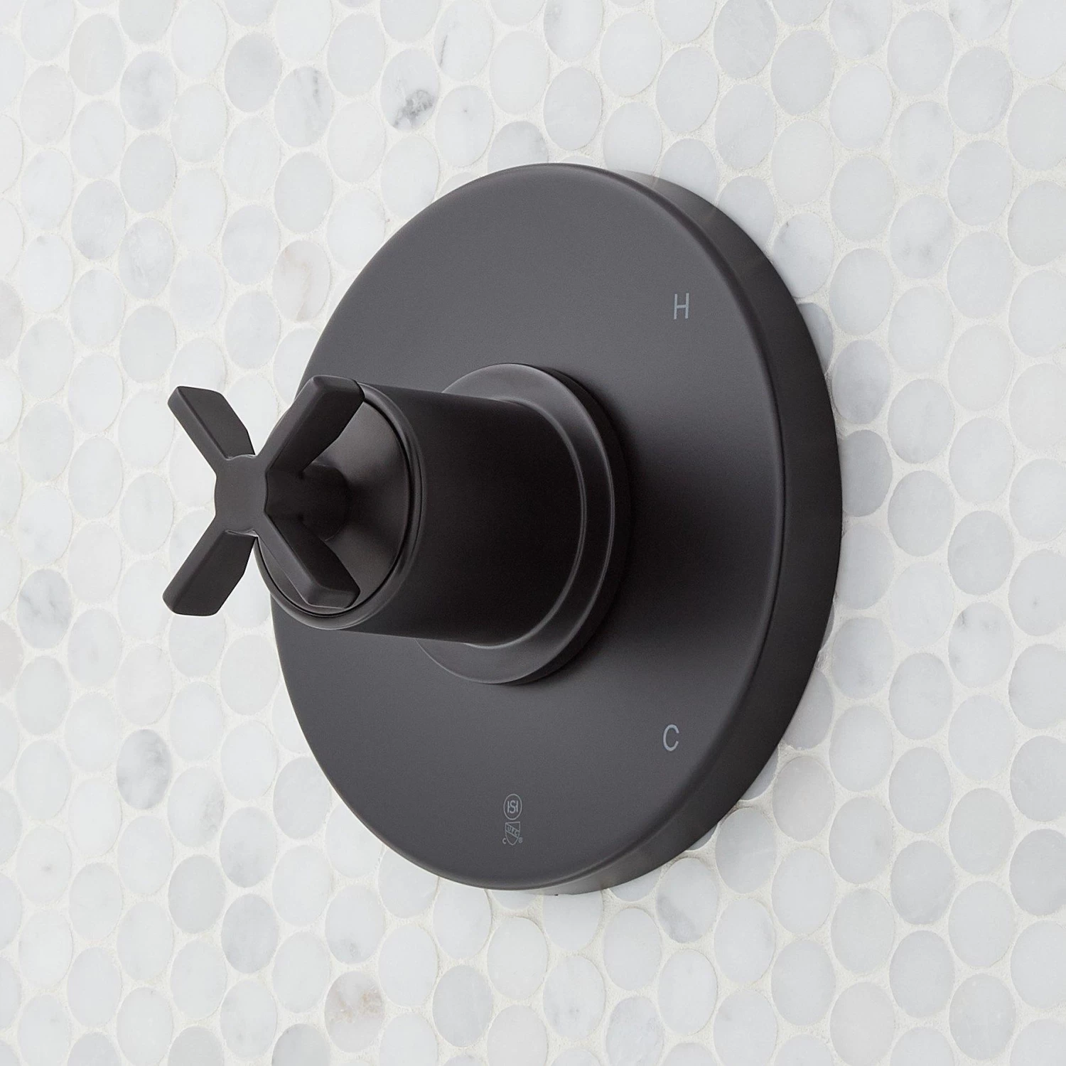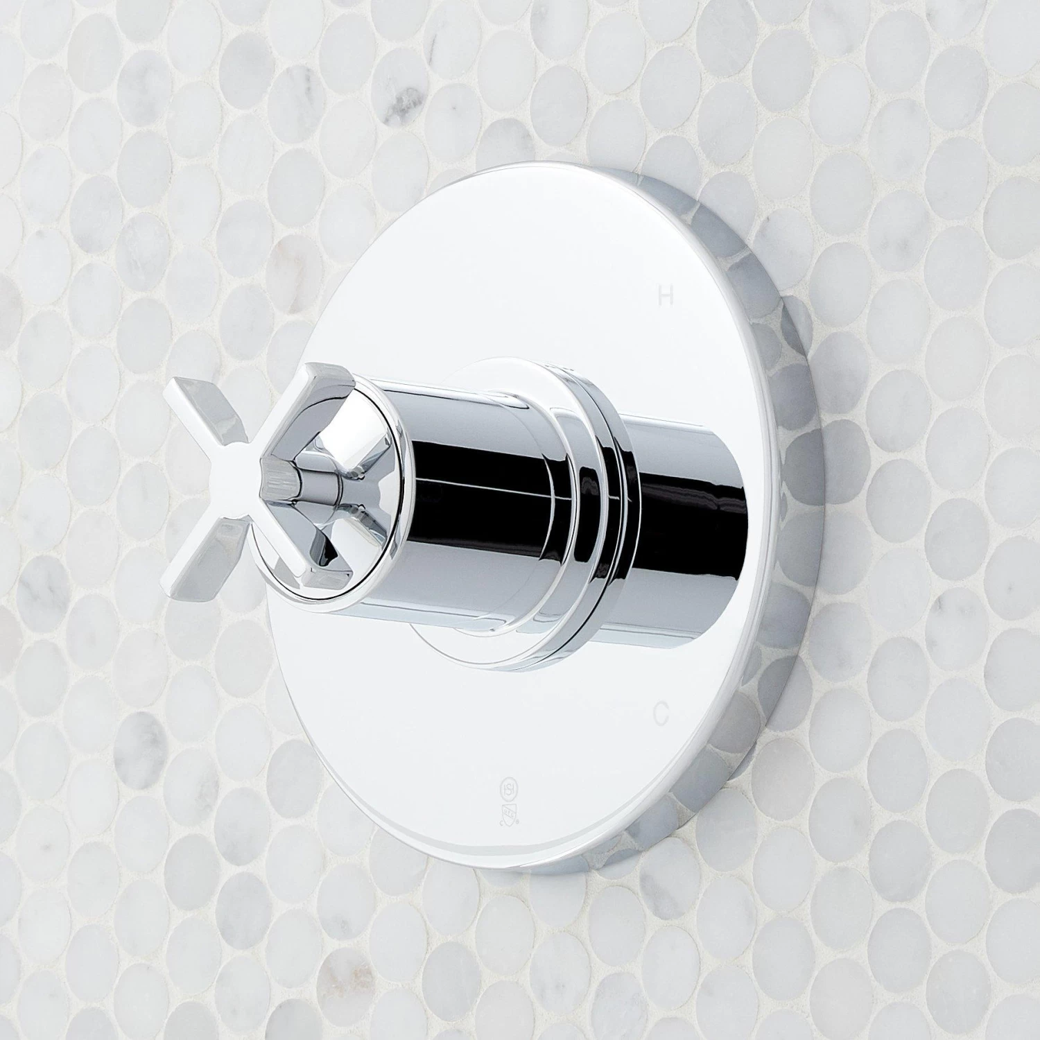 Complete a streamlined shower setup with the Vassor Pressure Balance Shower Valve Trim. Its minimalist profile complements a variety of spaces while making installation a breeze. Pressure balance functionality ensures water temperature and pressure remain steady during use, with a cross-handle knob providing seamless adjustment. Choose your favorite rust-resistant finish for a cohesive look in your shower.