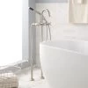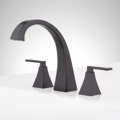 Sleek, angular lines are softened by a curved, arching gooseneck to give the Vilamonte Roman Tub Faucet modern appeal. This stylish faucet features easy-to-use lever handles and adds contemporary flair wherever installed. Construction with high quality materials and a premium, rust-resistant finish make the Vilamonte a lasting master suite addition.