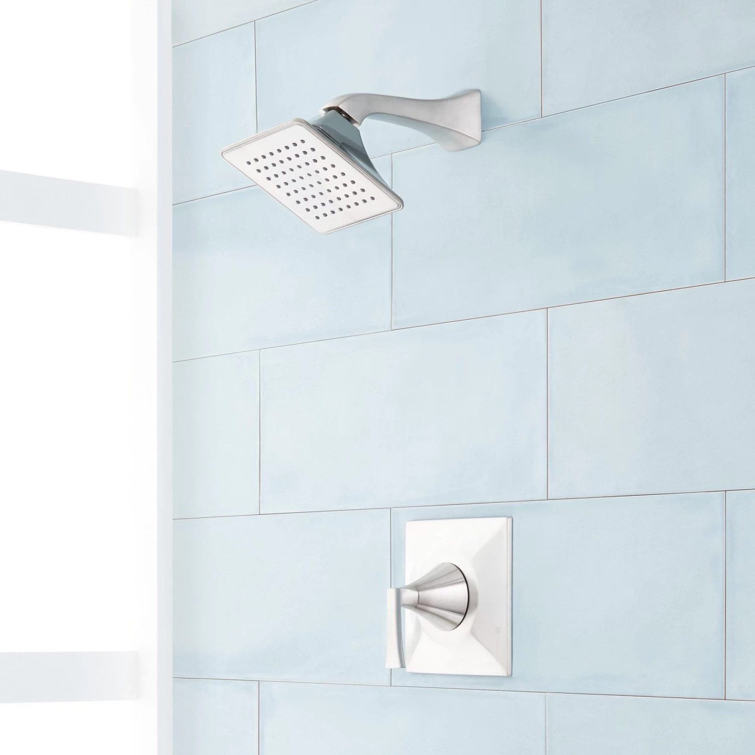 Accentuate your bathroom with the modern looks of the Vilamonte Pressure Balance Shower Set. It includes a square-shaped shower head that projects 8″ from the wall, with a flow rate of 1.8 gpm to conserve water. The included control has a single lever for streamlined performance and style.