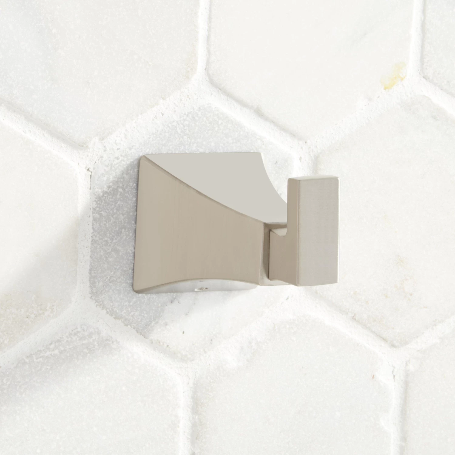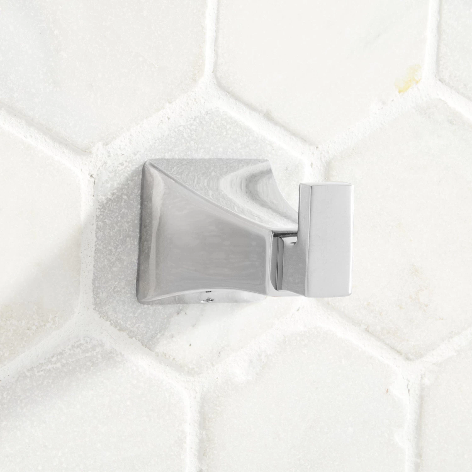 The Vilamonte Robe Hook has a tasteful design that complements any decor. Durably made, this accessory has a corrosion-resistant finish that makes it suitable for a wet environment. Easy to mount with the included hardware.