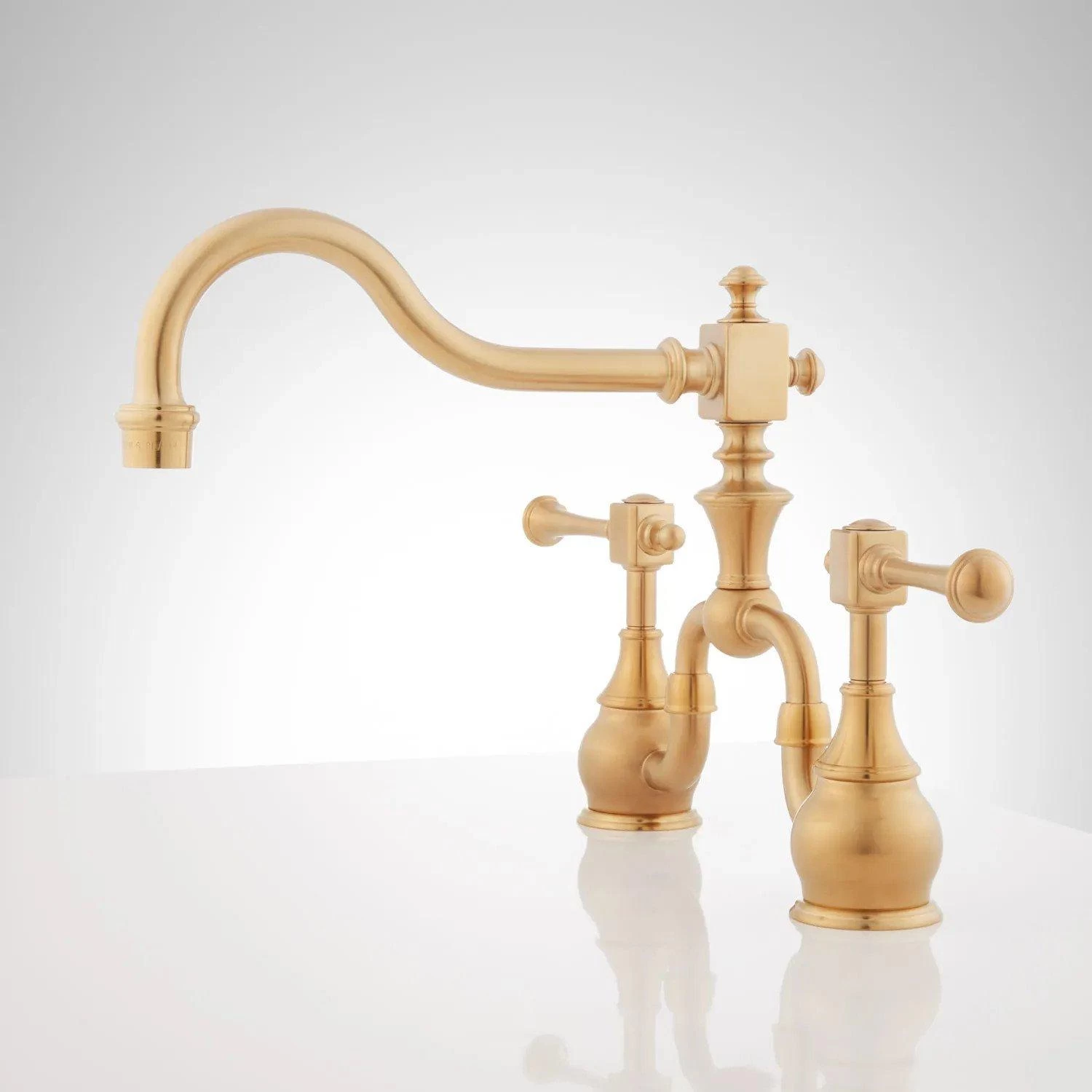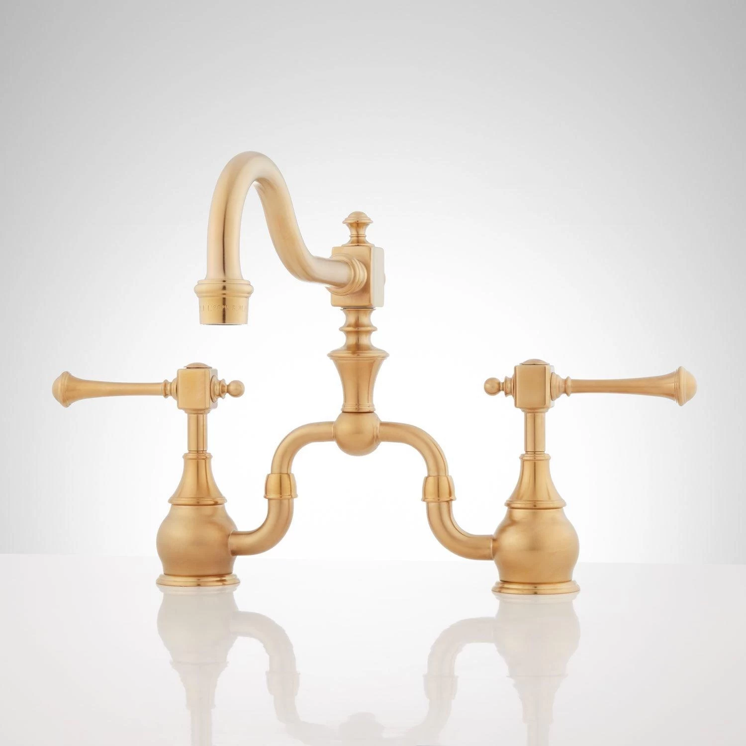 The Vintage Bridge Kitchen Faucet – Lever Handles features a hook style spout that displays a versatile design, making the faucet a great addition to any kitchen.