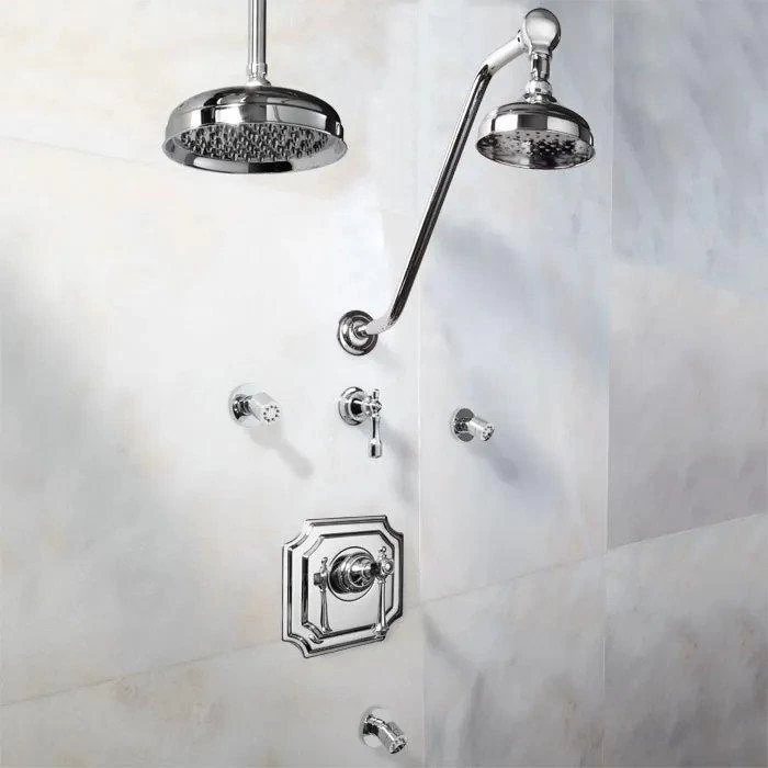 Designed with an appreciation for antique style, the Vintage Pressure Balance Shower System has all you need for a modern shower experience. Included in the shower set are a wall shower, ceiling shower and three swivel body sprays, with a three-way diverter to route water between each.
