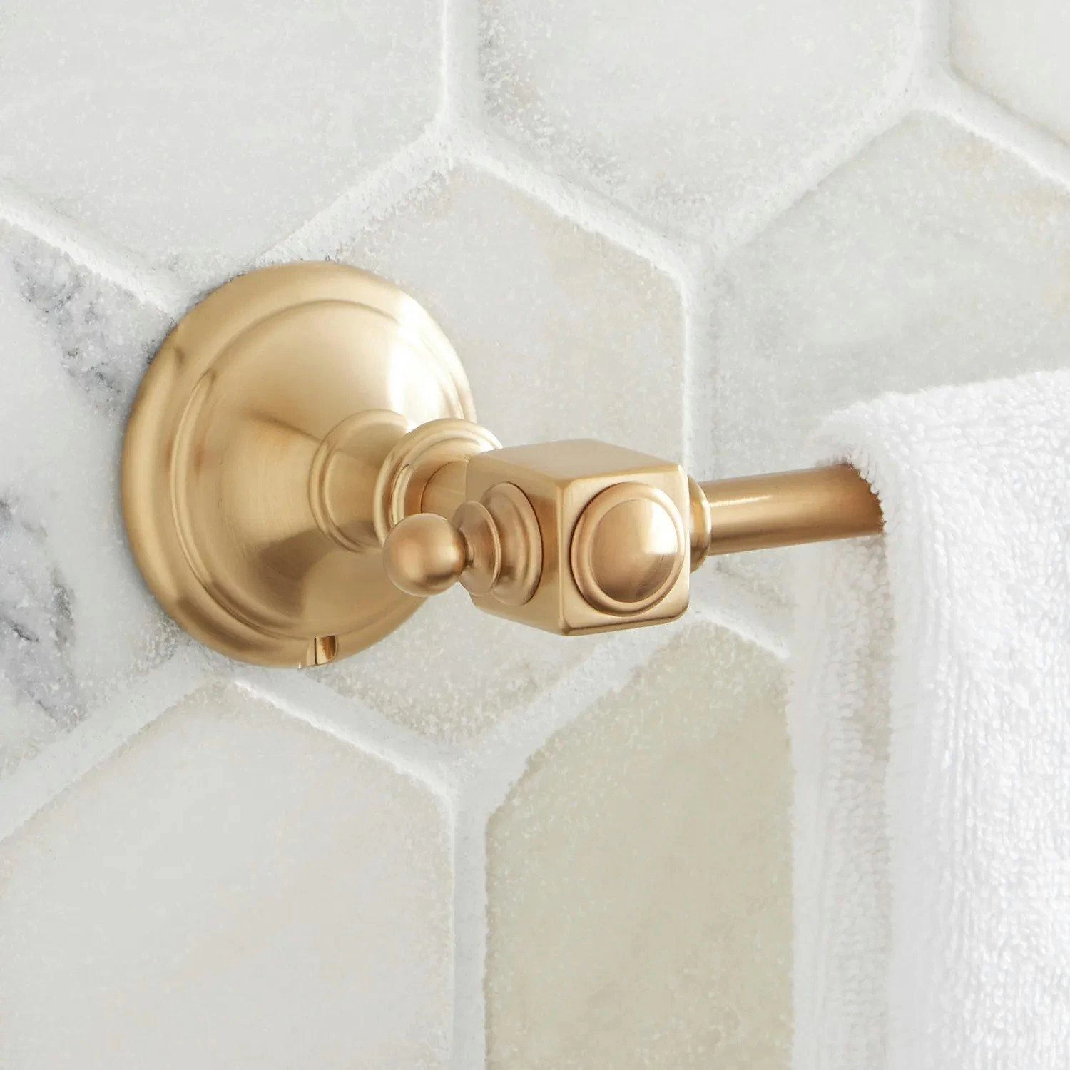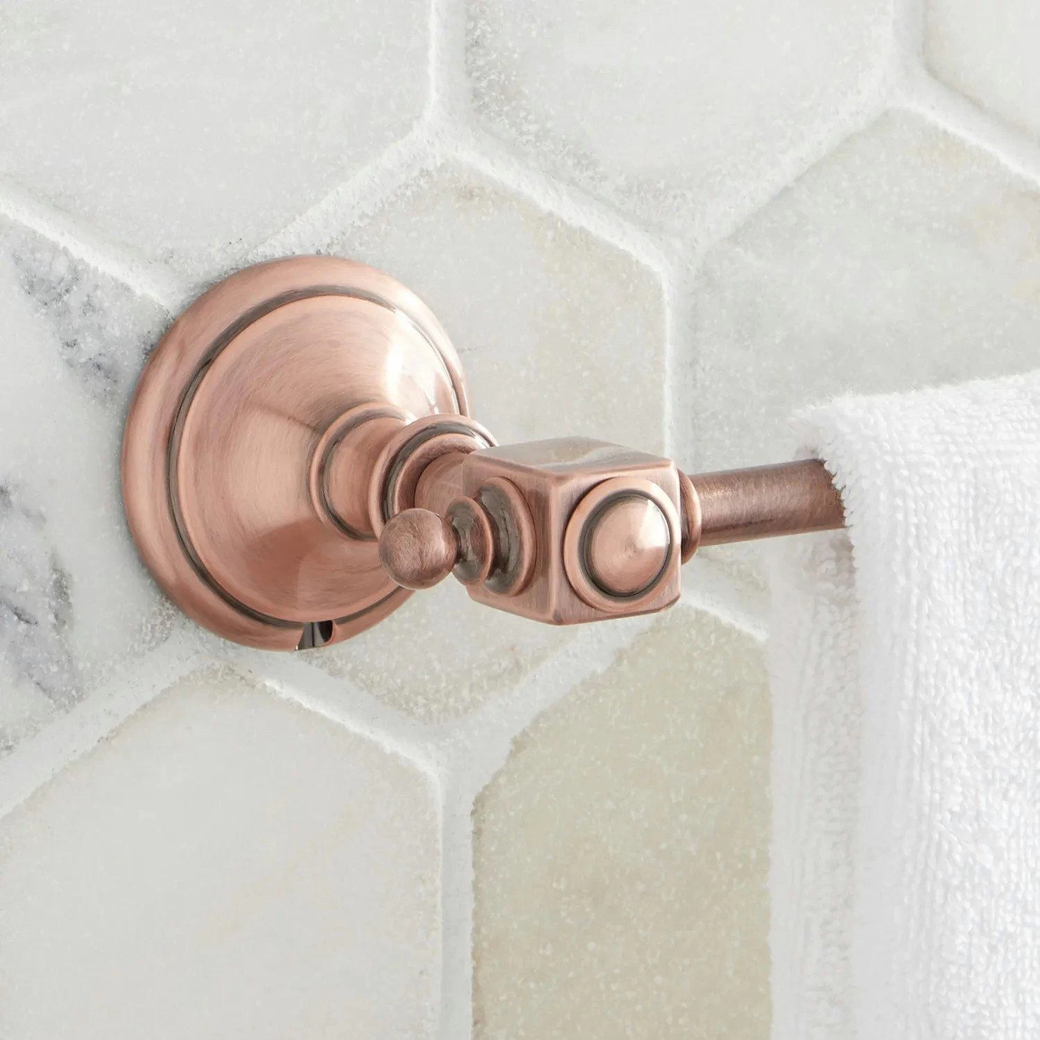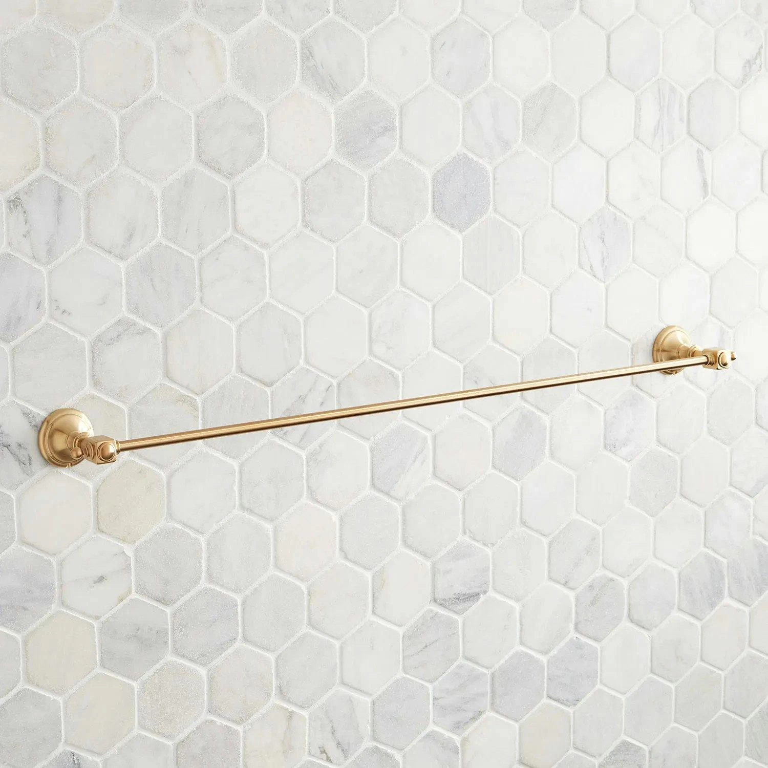 Crafted of solid brass, the Vintage Collection Towel Bar features tiered mounting brackets that will make a stunning addition to your bathroom decor. Choose other coordinating pieces from the Vintage Collection to create a fresh and upscale look.