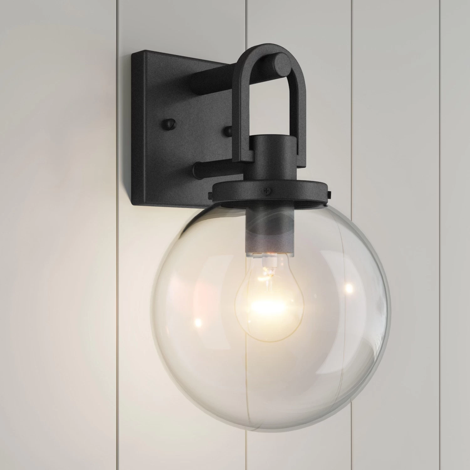 Achieve an inviting home entrance with the Wenston Outdoor Entrance Wall Sconce. Illuminate your porch with this exposed globe light, protected by glass while casting a lovely warm glow. A metal base with a corrosion-resistant black finish ensures the Wenston is not only eye-catching but can withstand the elements. For easy installation, all mounting hardware is included.