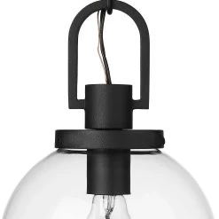 Complete an inviting porch or patio setup with the Wenston Outdoor Hanging Pendant. Constructed of metal and glass, the exposed globe light is the highlight of this fixture, adding a stunning glow to any space while remaining protected from the elements. Hang solo above doors or use multiples for optimal ambiance after dark. For easy installation, all mounting hardware is included.
