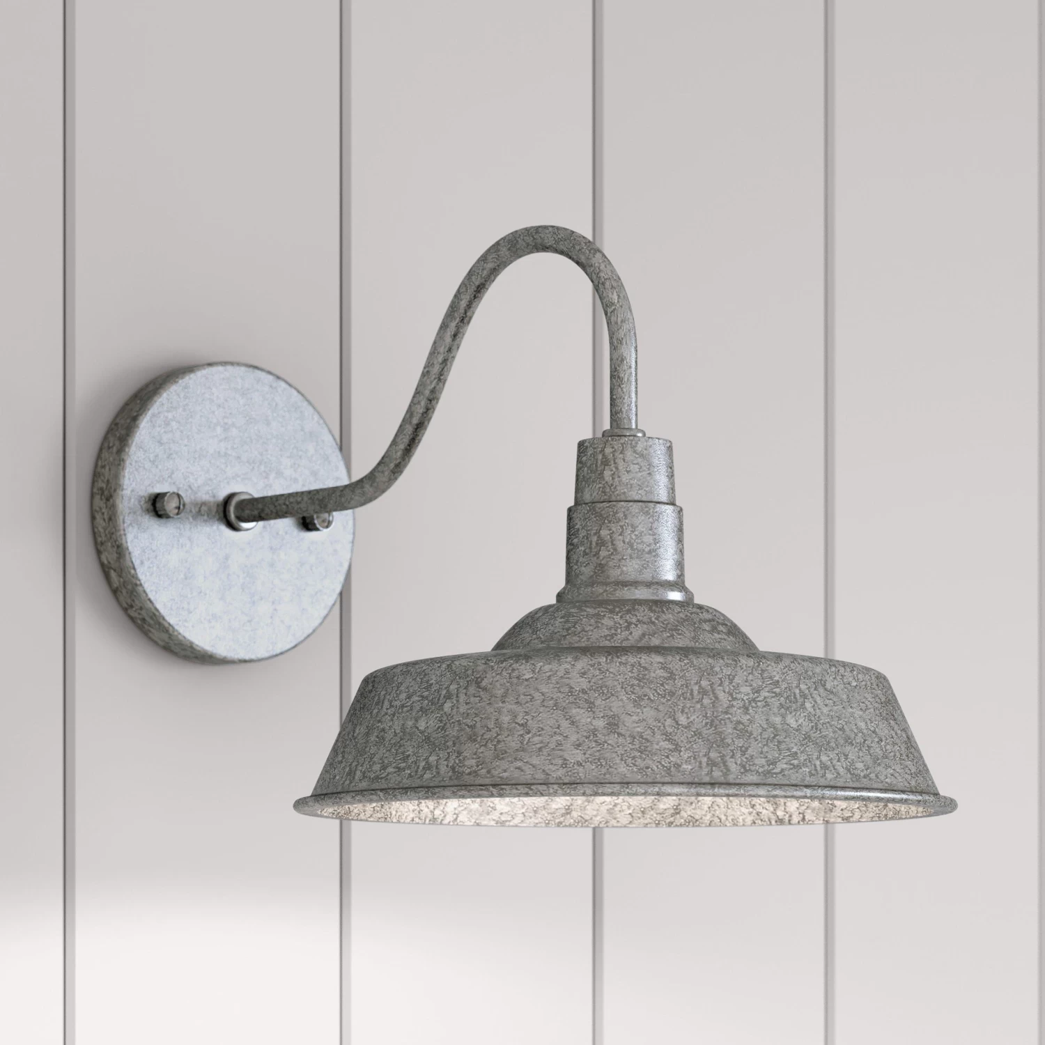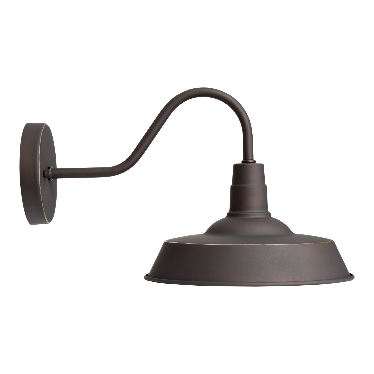 The traditional Wetherburn Outdoor Entrance Wall Sconce is perfect for both industrial and modern farmhouse style. This no-fuss design features a high-arching gooseneck and a stylish warehouse shade to keep light directed downward. Mounting hardware is included for easy installation.