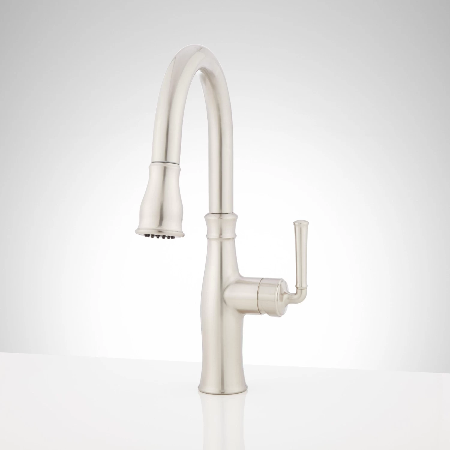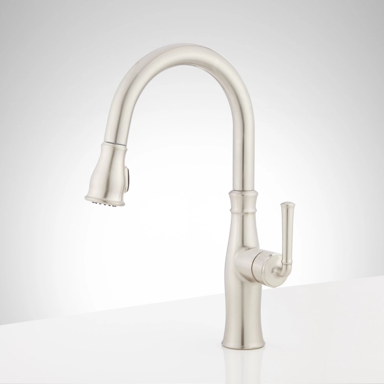 The Williston Single-Hole Kitchen Faucet exudes classic elegance that complements a traditional kitchen. This fixture has a multifunction head that allows you to quickly switch from an aerated stream to a rinsing spray, which pulls down from the arching swivel spout. Built to last, the Williston is made of high quality materials and features your choice of rust-resistant finish.
