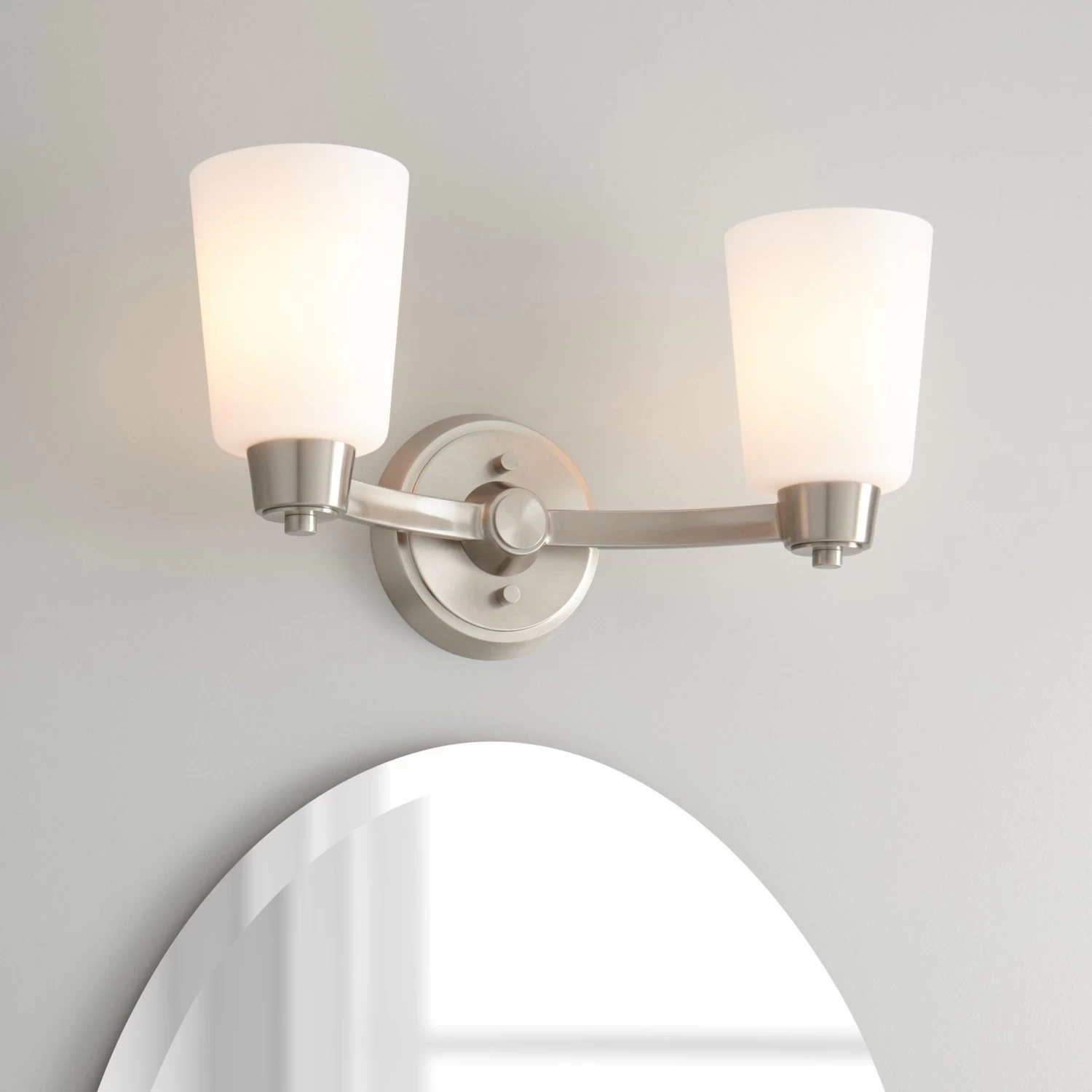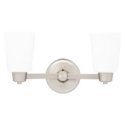 Illuminate your bathroom with the Windsor Gate Vanity Light, which features frosted glass to create a soft glow. The metal bases and round backplate are covered in a corrosion-resistant finish that complements other traditional-style fixtures in your space.