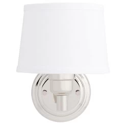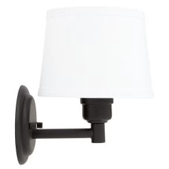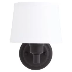Simple-yet-effective styling allows the Worthington Wall Sconce to stand out in any room. Its classic white fabric shade is supported by a metal base and round backplate, both covered in a beautiful corrosion-resistant finish. Includes mounting hardware necessary for an easy installation.