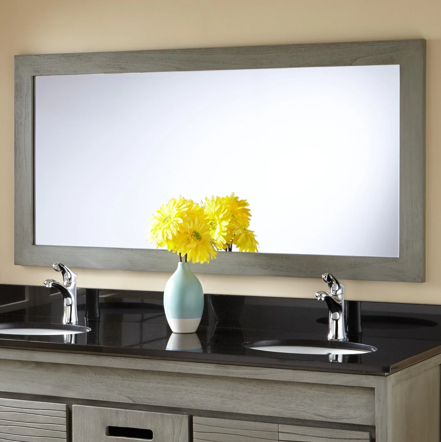 - 55″ Mirror overall dimensions: 55-1/4″ W x 27-5/8″ H x 1-1/8″ D. Mirror only dimensions: 49-5/8″ W x 2-1/8″H.